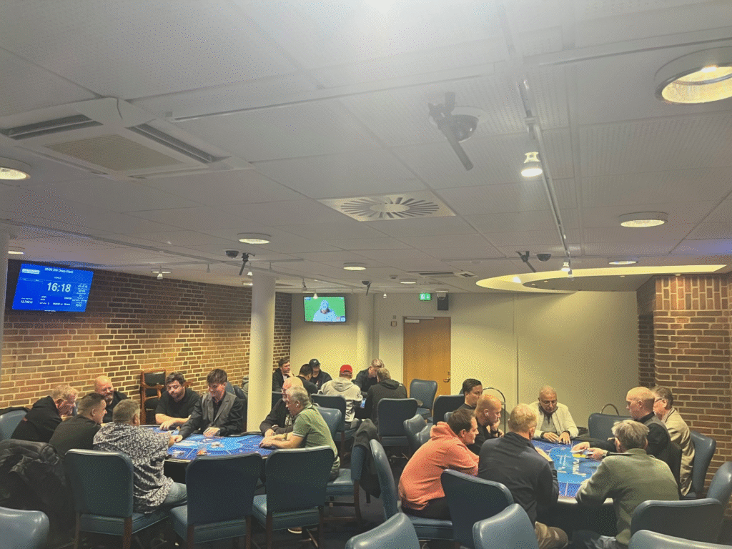 Næste gang med ugeturnering på Casino Munkebjerg er torsdag den 2. oktober kl. 18.30, hvor der igen er deepstack poker med 25.000 i stacken og et buy‑in på 500 kr. Tilmelding sker på Casino Munkebjergs hjemmeside.