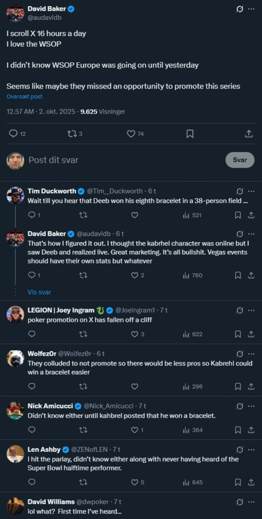 Kritikken har især været rettet mod WSOP Europe generelt, hvor interessen – særligt fra amerikanske profiler – synes at være dalende. Mange i pokerkredse mener, at WSOPE er gledet i baggrunden i forhold til den klassiske Vegas-serie, og at mange amerikanske spillere nærmest havde glemt, at den europæiske pendant overhovedet blev afholdt.