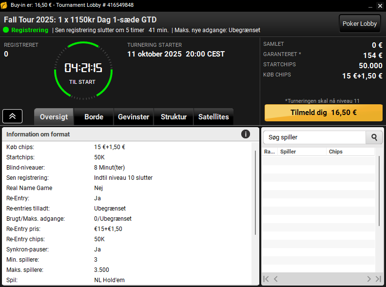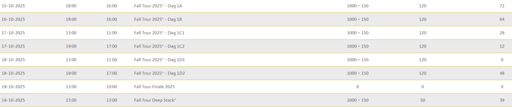 Danske Spil Poker har de kørt kvaller til Fall Tour siden den 22. september 2025. Hver eneste dag har der været kvalifikationssatellitter og mange har derfor allerede sikret sig en billet.