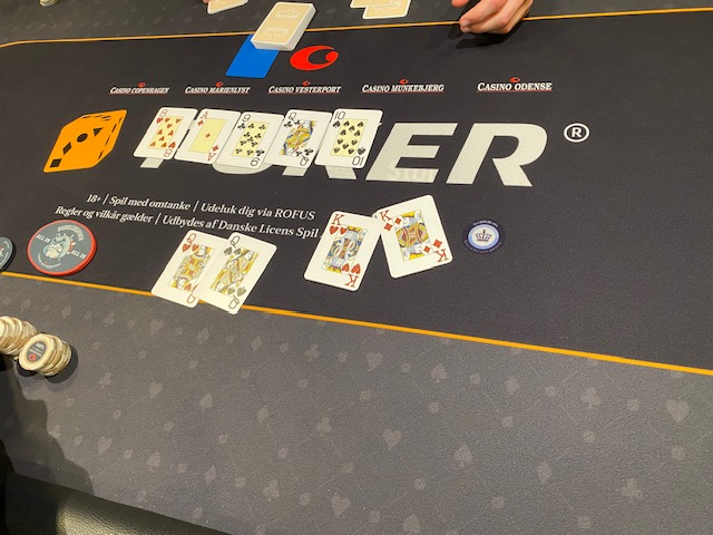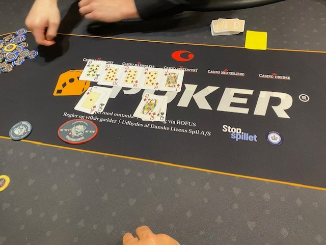 Vi fangede desværre ikke billeder af de fine hænder. Men først laver Carsten Kjeldsen fire ens på bord 22 og et kæmpe setup. Lidt senere på samme bord, så er det Rune Risum med fire ens. Vild action dealer, som man siger.