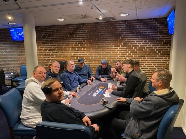 På Casino Munkebjerg blev der i går, søndag den 8. marts 2026, spillet søndagspoker i en udsolgt pokerkælder.