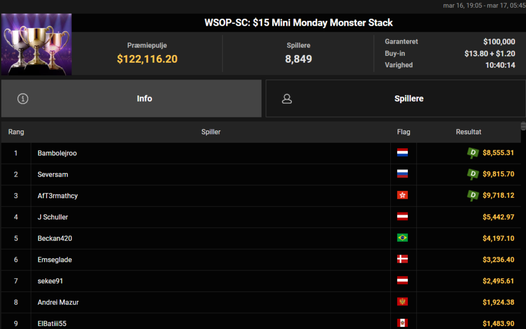 Danske Spil Poker – mandag