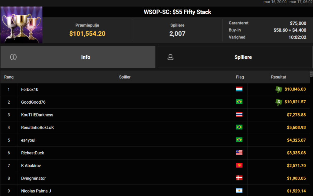 En 9. plads og $1.983 til Frederik “Dvingminator” Dvinge i WSOP-SC: $55 Fifty Stack med $75.000 garanteret er definitionen på lige ved og næsten.