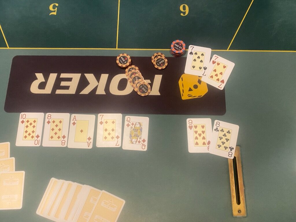 Efter flere all-in-situationer var jeg efterladt med en meget kort stack, men Claus tilbød mig en ekstra tusinde kroner – en fin gestus.