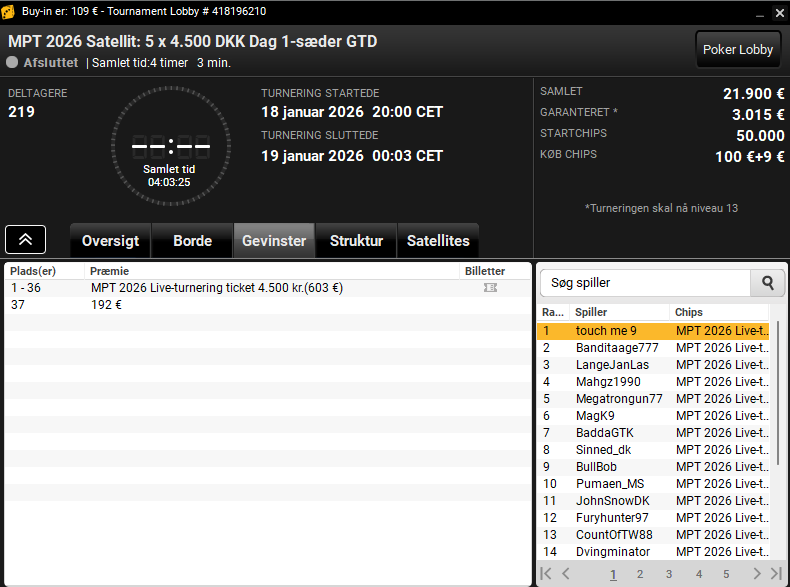 Danske Spil Poker – søndag