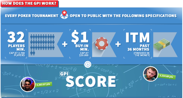 Inde på Global Poker Index’s hjemmeside kan man se årets resultater og endda månedens resultater etc. Man kan på en måde sige, at der er to forskellige rankings; en, hvor der udregnes på årsbasis og en anden, hvor selve GPI-pointene bliver udregnet fra. Den foregår over en 3-årig periode.
