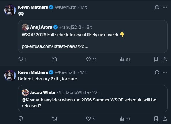 Historisk set har WSOP haft for vane at offentliggøre sommerens program i februar, og de seneste år er mønstret blevet mere og mere tydeligt. Typisk ser vi enten en samlet release eller en meget kompakt offentliggørelse, hvor næsten alt kommer på én gang. Rygter i miljøet – og velkendte stemmer tæt på WSOP – peger på, at programmet allerede er færdigt og klar til at blive delt med offentligheden.